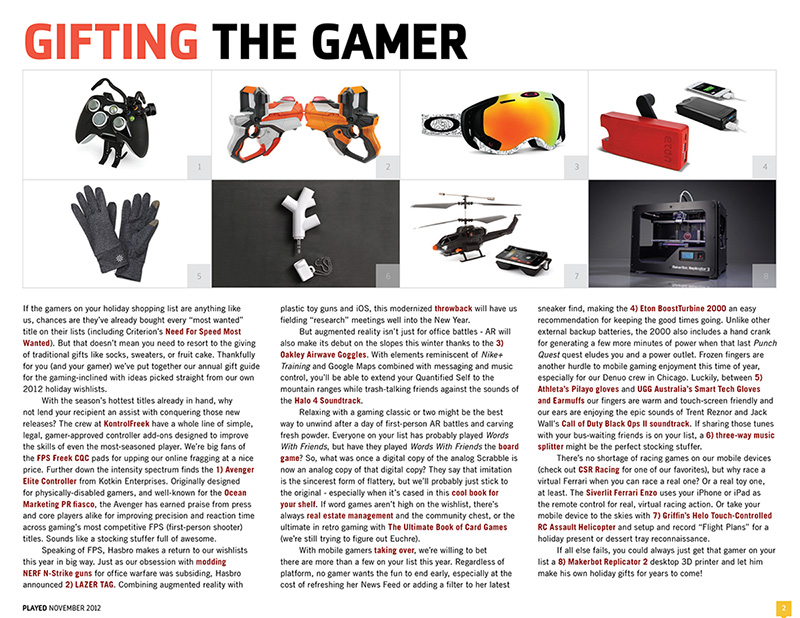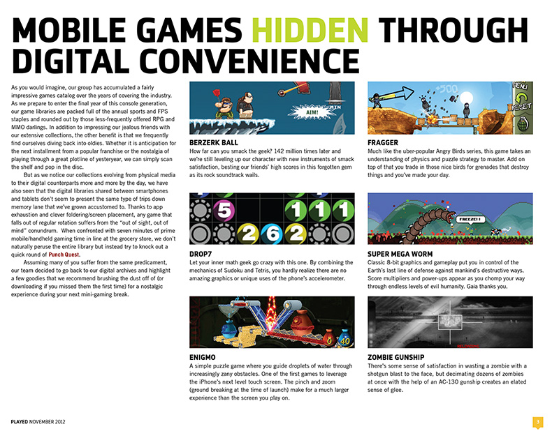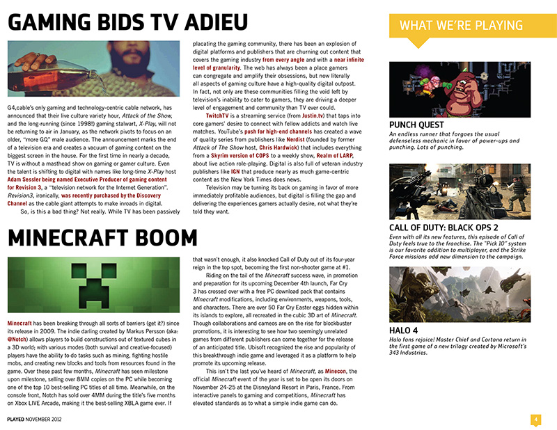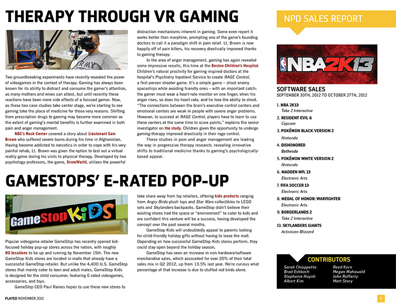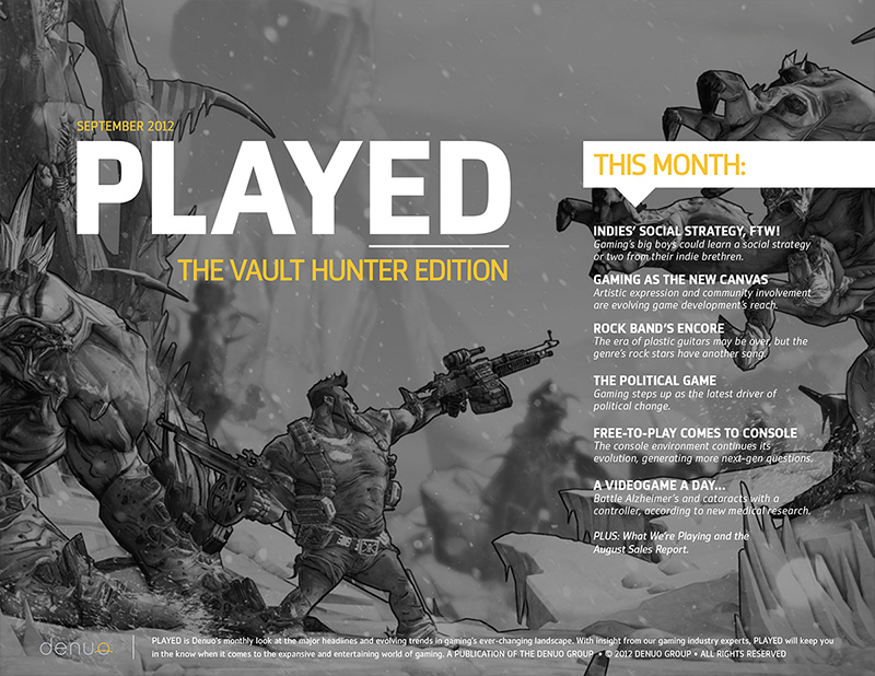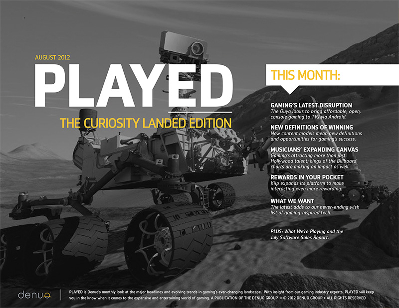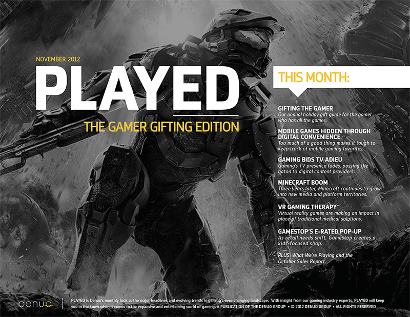 Denuo's monthly publication focuses on the major headlines and evolving trends in gaming's ever-changing landscape, told from a marketer/advertiser perspective. PLAYED includes features from the group's gaming experts, monthly industry sales data, and the staff's latest favorites.